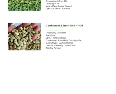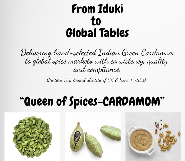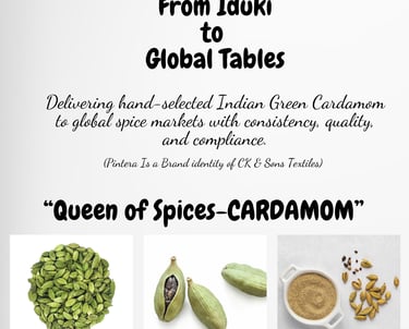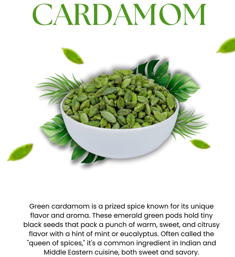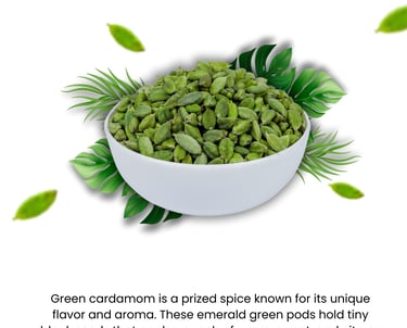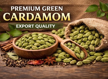 Indian Cardamom—often called the “Queen of Spices”—is globally admired for its bold aroma, high essential oil content, and vibrant natural green color. Grown in the pristine Western Ghats of India, Indian cardamom develops its unmatched quality due to: